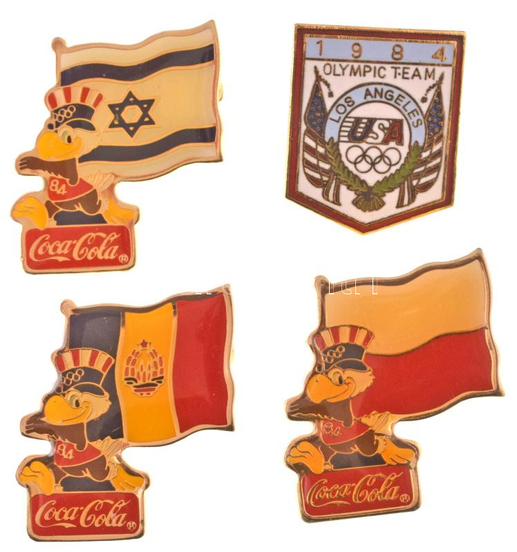 Amerikai Egyesült Államok 1984. "Résztvevő országok - Los Angeles" műgyantás fém olimpiai jelvény (3xklf: Izrael, Lengyelország, Románia) + "Egyesült Államok olimpiai csapata 1984, Los Angeles" zománcozott fém jelvény T:UNC,AU USA 1984. "Participating countries - Los Angeles" resin metal Olympic badges (3xdiff: Israel, Poland, Romania) + "USA Olympic Team 1984, Los Angeles" enamelled metal badge C:UNC,AU