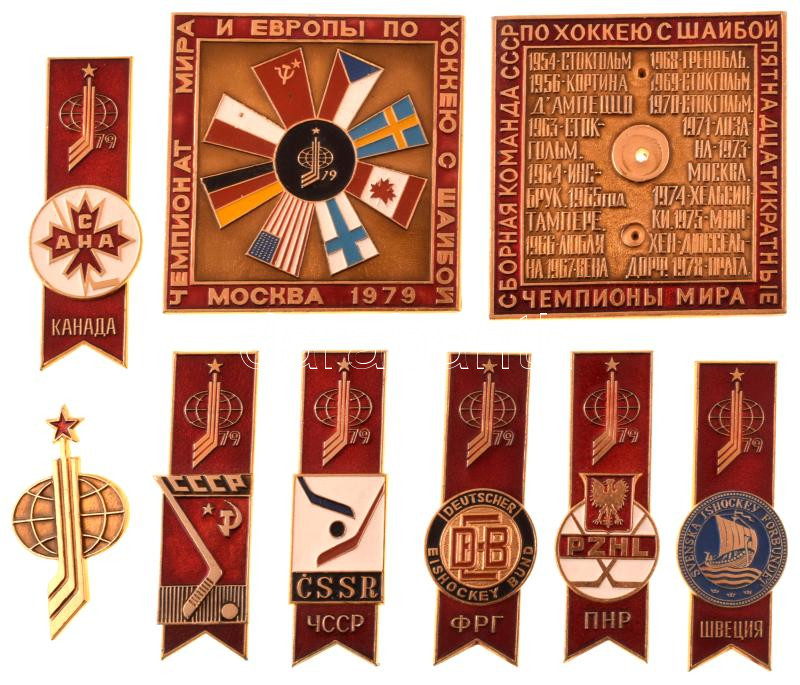 Szovjetunió 1979. "A-csoportos Jégkorong Világbajnokság" 8xk... https://www.darabanth.com/en/457-Online-auction/457.0/Numismatics/Sports-awards-and-sports-commemorative-medals~12/Szovjetunio-1979-A-csoportos-Jegkorong-Vilagbajnoksag-8xklf-jelvenybol-allo-tetel-kozt~II3053995