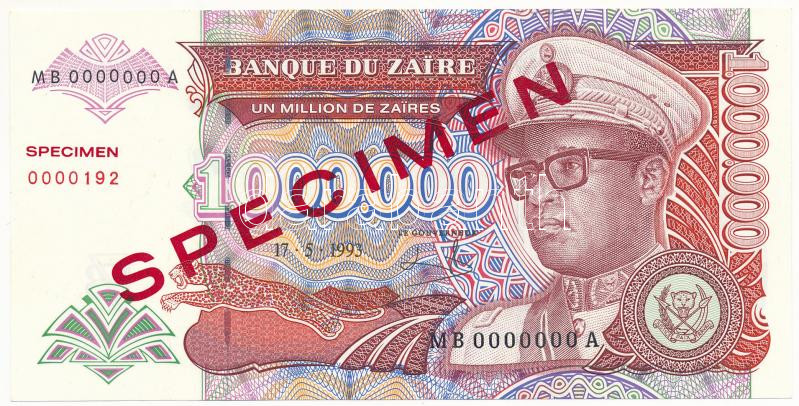 https://www.darabanth.com/en/457-Online-auction/457.0/Numismatics/Worldwide-banknotes~15/Zaire-1993-1000000Z-MB-0000000-A-MINTA-felulbelyegzessel-sorszamozott-minta-0000192-T~II2921307