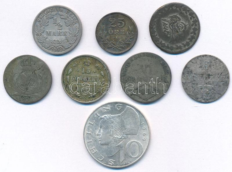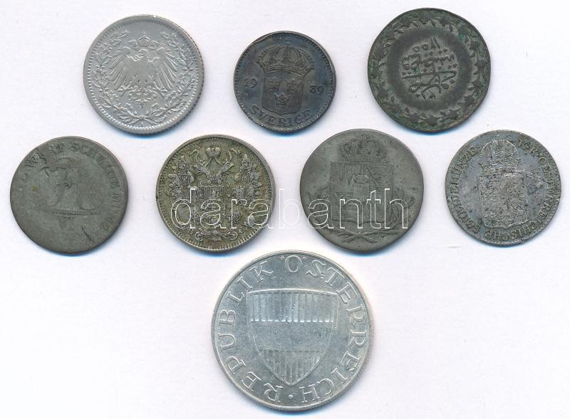 8db-os vegyes, klf külföldi ezüstpénz tétel, közte Német Birodalom, Ausztria, Orosz Birodalom, Svédország, Oszmán Birodalom T:XF-F patina 8pcs of mixed foreign silver coin lot, in it German Empire, Austria, Russian Empire, Sweden, Ottoman Empire C:XF-F patina