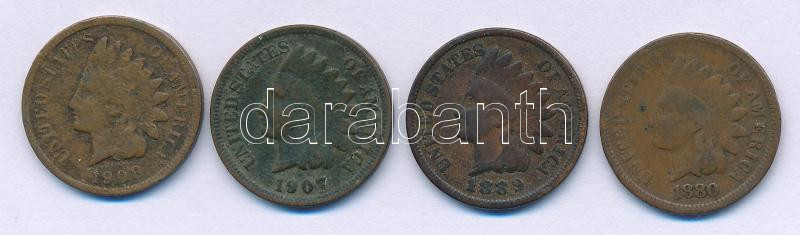 Description: Amerikai Egyesült Államok 1880-1908. 1c bronz "Indiánfej" (4xklf) T:VF,F patina