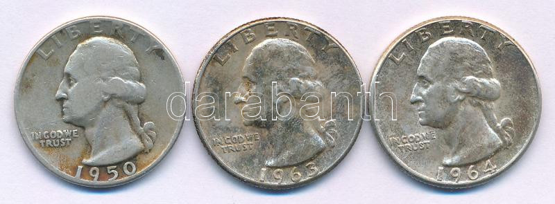 Amerikai Egyesült Államok 1950-1964. 1/4$ Ag "Washington" (3... https://www.darabanth.com/en/457-Online-auction/457.0/Numismatics/Worldwide-silver-and-metal-coins~16/Amerikai-Egyesult-Allamok-1950-1964-14USD-Ag-Washington-3xklf-TXF-VF-patina-USA-1950-1964-1~II3051895