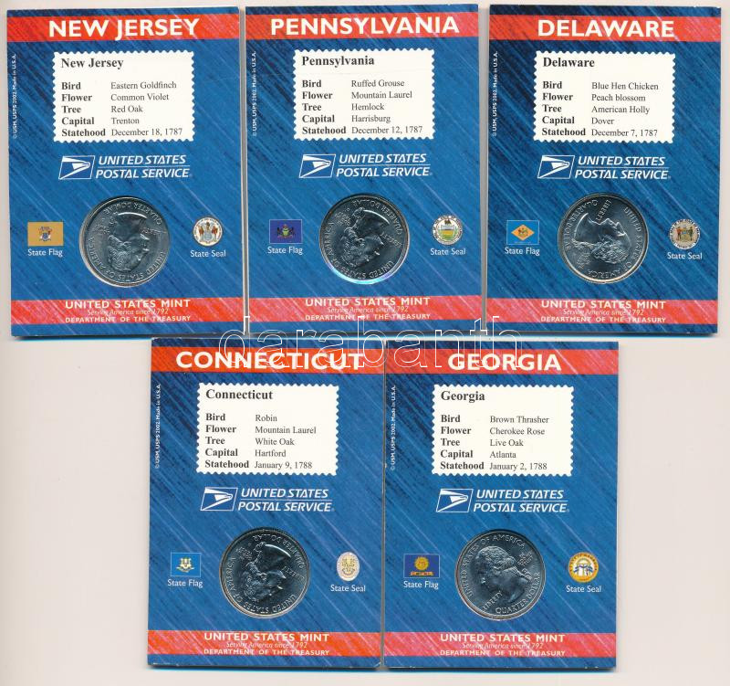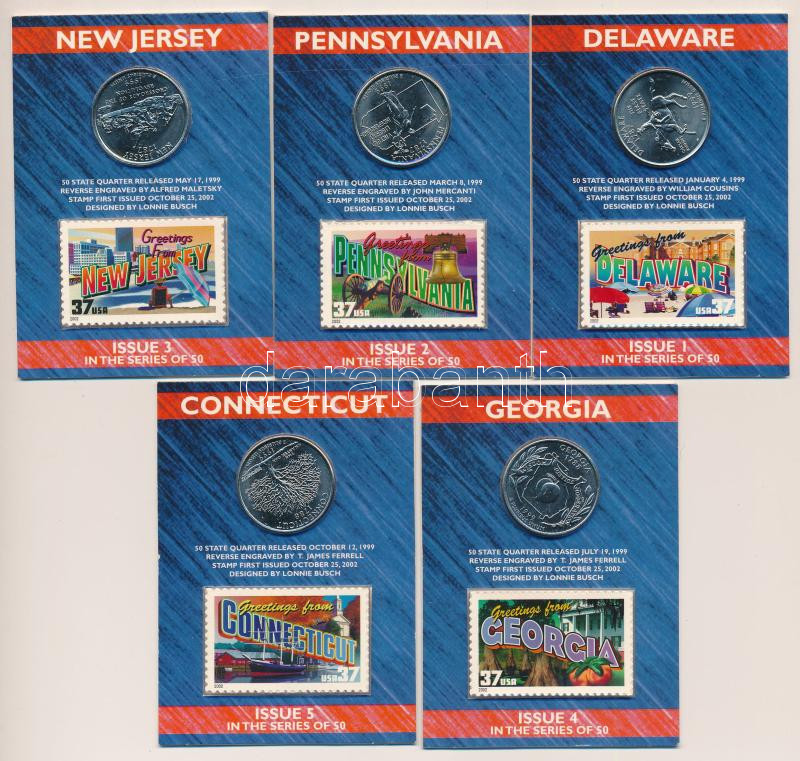 Amerikai Egyesült Államok 1999. 1/4$ Cu-Ni "50 állam" (5xklf... https://www.darabanth.com/en/457-Online-auction/457.0/Numismatics/Worldwide-silver-and-metal-coins~16/Amerikai-Egyesult-Allamok-1999-14USD-Cu-Ni-50-allam-5xklf-belyeges-karton-diszlapon-TUNC-~II2998939