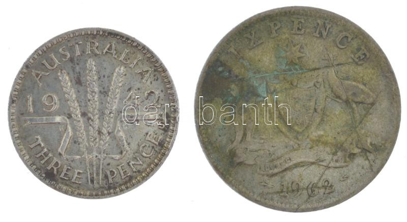 Ausztrália 1942. 3p Ag "VI. György" + 1962. 6p Ag "II. Erzsébet" T:XF,F patina Australia 1942. 3 Pence Ag "George VI" + 1962. 6 Pence Ag "Eizabeth II" C:XF,F Krause KM#37, KM#58