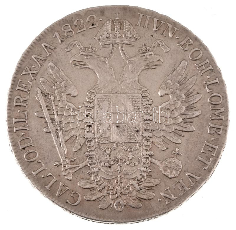 https://www.darabanth.com/en/457-Online-auction/457.0/Numismatics/Worldwide-silver-and-metal-coins~16/Ausztria-1822A-Taller-Ag-I-Ferenc-Becs-28-03g-TXF-VF-karc-Austria-1822A-Thaler-Ag-Franz-I-~II3054518