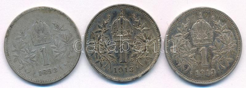 Ausztria 1893-1913. 1K Ag "Ferenc József" (3db/2xklf) T:XF-F...
