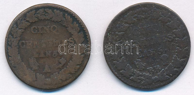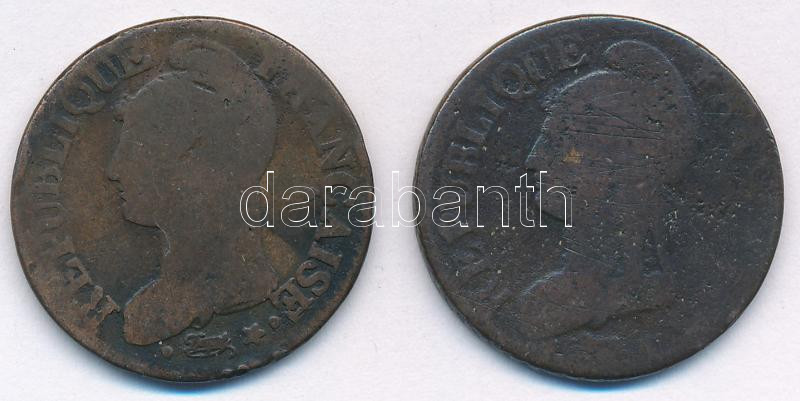 Description: Franciaország 1795-1796. (L'An 5.) 5c bronz (2x) A és BB verdejelek T:F France 1795-1796 (L'An 5.) 5 Centimes bronze (2x) A and BB mintmarks C:F Krause KM#642