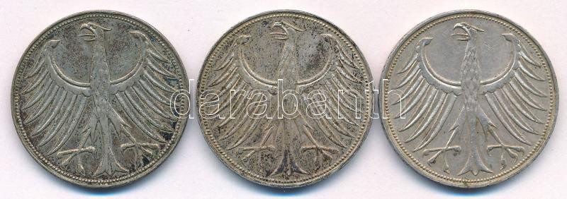 NSZK 1951-1966. 5M Ag (3xklf) T:XF,VF patina, kis ph
