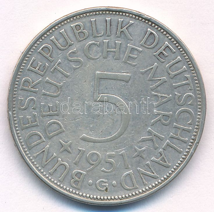 https://www.darabanth.com/en/457-Online-auction/457.0/Numismatics/Worldwide-silver-and-metal-coins~16/NSZK-1951G-5M-Ag-TVF-patina-ph-karc-FRG-1951G-5-Mark-Ag-CVF-patina-edge-error-scratch-Krause~II3018670
