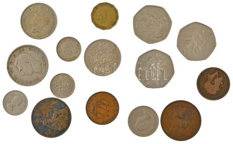Nagy-Britannia 1906-1980. 15db-os vegyes fémpénz tétel T:vegyes