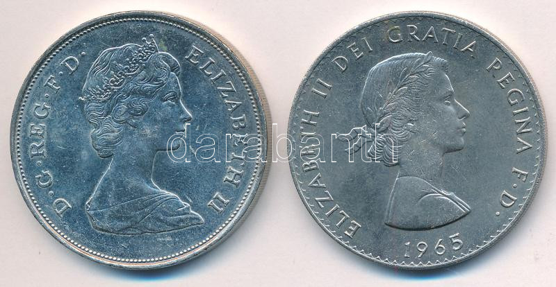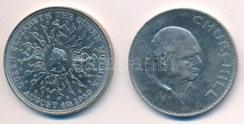 Description: Nagy Britannia 1965. 1C Cu-Ni "II. Erzsébet / Churchill" + 1980. 25p Cu-Ni "II. Erzsébet / Az anyakirálynő 80. születésnapja" T:XF kis ph.