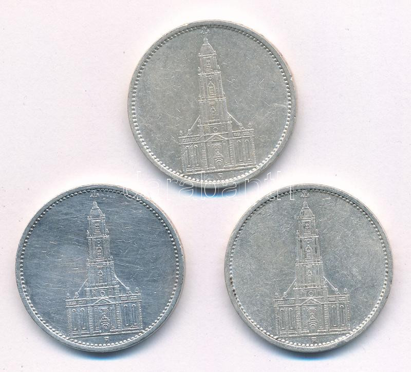 Német Harmadik Birodalom 1935A 5M Ag "Garnisonkirche" (3x) T... https://www.darabanth.com/en/457-Online-auction/457.0/Numismatics/Worldwide-silver-and-metal-coins~16/Nemet-Harmadik-Birodalom-1935A-5M-Ag-Garnisonkirche-3x-T2-ph-German-Third-Reich-1935A-5-Reich~II2999306
