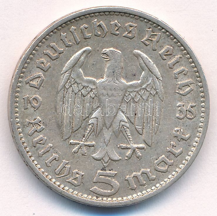 https://www.darabanth.com/en/457-Online-auction/457.0/Numismatics/Worldwide-silver-and-metal-coins~16/Nemet-Harmadik-Birodalom-1935J-5M-Ag-Hindenburg-TXF-patina-German-Third-Reich-1935J-5-Reichsmark~II3019037