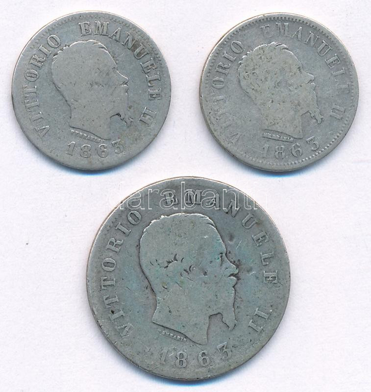 Description: Olaszország 1833M 50c Ag "II. Viktor Emánuel" + 1863N 50c Ag "II. Viktor Emánuel" + 1863M 1L Ag "II. Viktor Emánuel" T:F,VG