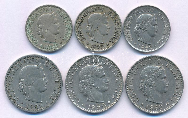 Svájc 1889-1962. 5R Cu-Ni (3xklf) + 1891. 20R Ni + 1955-1960. 20R Cu-N...