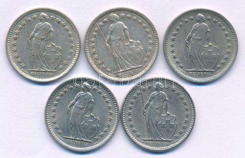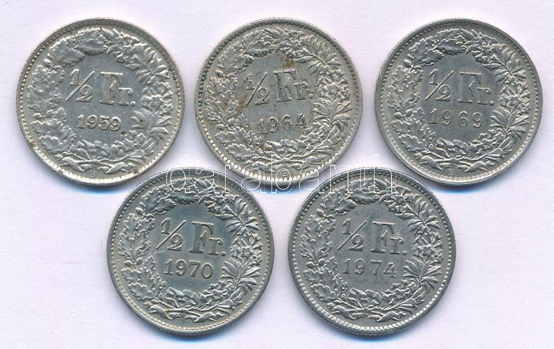 Svájc 1959-1964. 1/2Fr Ag (2xklf) + 1969-1974. 1/2Fr Cu-Ni (3xklf) T:A...