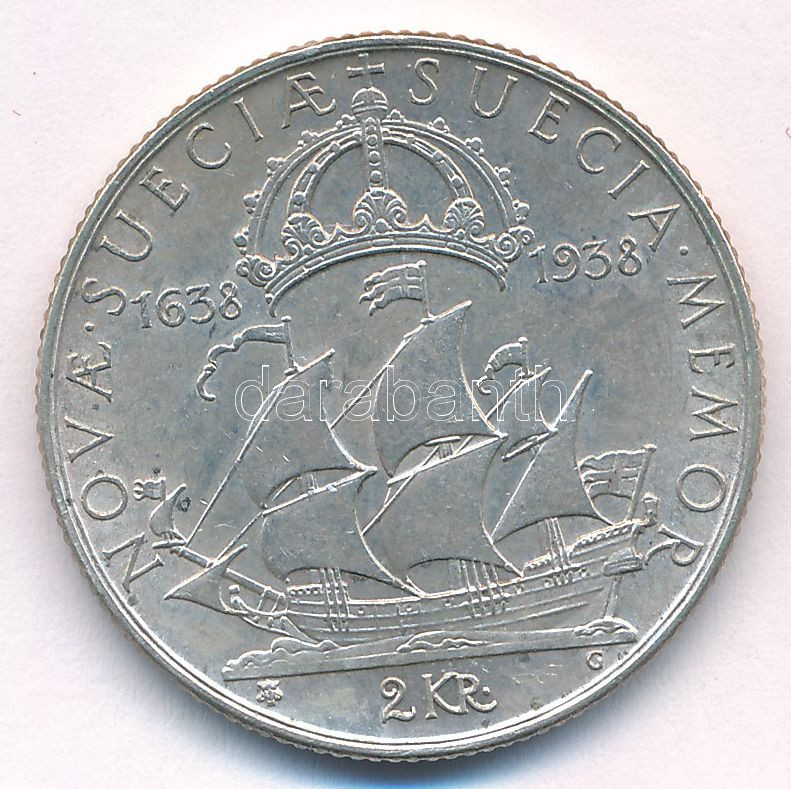 Description: Svédország 1938. 2K Ag "Új-Svédország alapításának 300. évfordulója (Delaware)" T:VF Sweden 1938. 2 Kronor Ag "Founding of New Sweden - 300th Anniversary (Delaware)" C:VF Krause KM#807