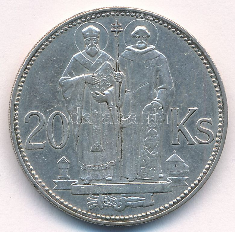 Szlovákia 1941. 20K Ag "Cirill és Metód" T:XF patina, kis ph... https://www.darabanth.com/en/457-Online-auction/457.0/Numismatics/Worldwide-silver-and-metal-coins~16/Szlovakia-1941-20K-Ag-Cirill-es-Metod-TXF-patina-kis-ph-karc-Slovakia-1941-20-Korun-Ag-S~II3021820