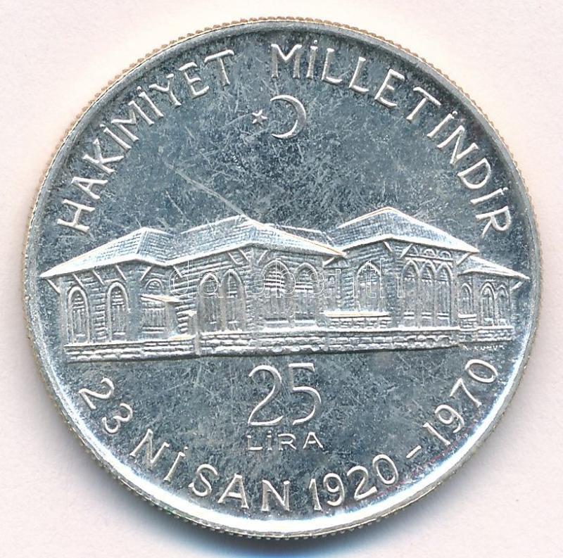 Törökország 1970. 25L Ag "Az ankarai nemzetgyűlés 50. évfordulója... https://www.darabanth.com/en/457-Online-auction/457.0/Numismatics/Worldwide-silver-and-metal-coins~16/Torokorszag-1970-25L-Ag-Az-ankarai-nemzetgyules-50-evforduloja-TA-Turkey-1970-25-Lira-~II3034378