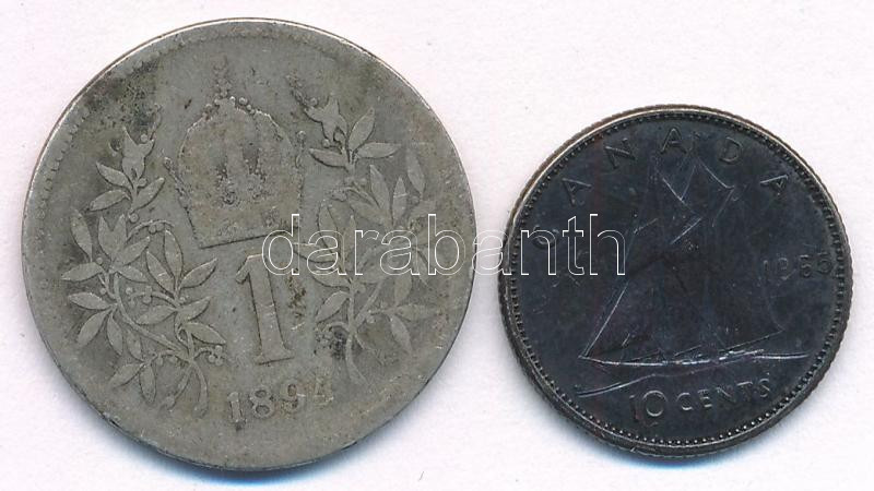 Vegyes: Ausztria 1894. 1K Ag "Ferenc József" + Kanada 1965. ... https://www.darabanth.com/en/457-Online-auction/457.0/Numismatics/Worldwide-silver-and-metal-coins~16/Vegyes-Ausztria-1894-1K-Ag-Ferenc-Jozsef-plus-Kanada-1965-10c-Ag-II-Erzsebet-TF-XF-Mixed-Au~II3019613