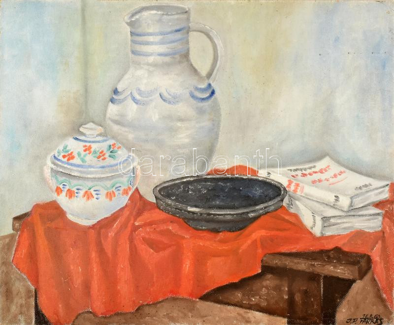 Farkas jelzéssel: Csendélet. Olaj, farost. 55x66 cm