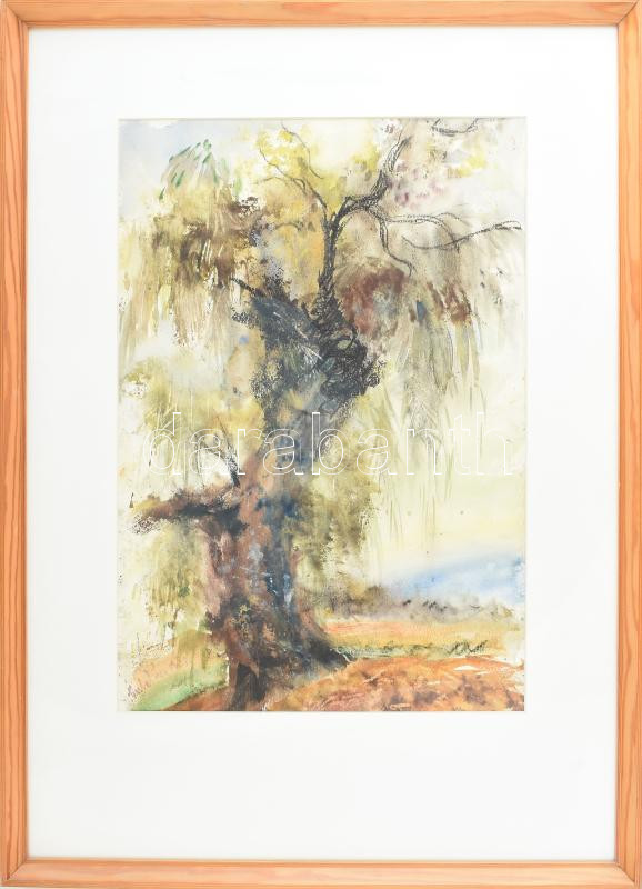 Antal Irén (1903-1999): Vízparti fa. Akvarell, papír, üvegezett fakeretben. 48,5x33,5 cm