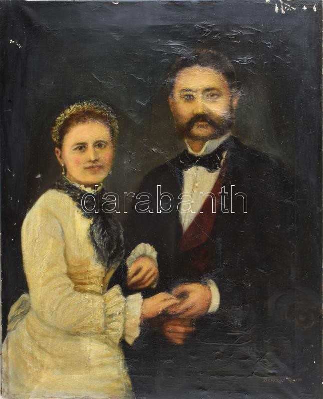 Benczúr Gyula jelzéssel: Pár portréja. Olaj, vászon. Sérült. 68x55 cm.