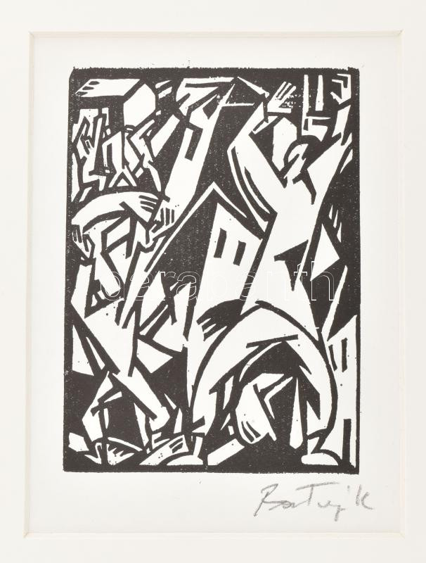 Bortnyik Sándor (1893-1976): Alakok, linómetszet, papír, utólagos jelzéssel, paszpartuban, 11,5×8,5 cm