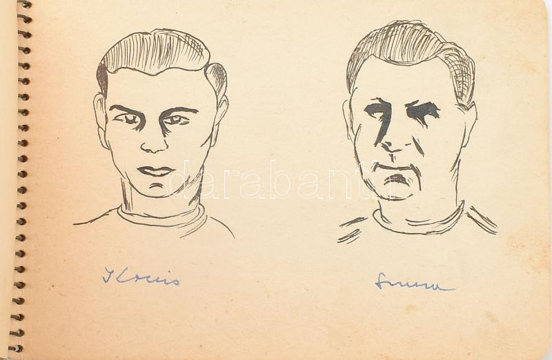 Egy hithű kommunista káder rajzai munkásokról főleg, a Baranya megyei Gordisa községből, több mint 25 kép vázlatfüzetben 11x17 cm