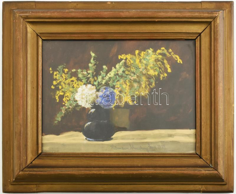 Hermann Sch...ch..y Soma 1929 jelzéssel: Virágcsendélet. Tempera, papí...