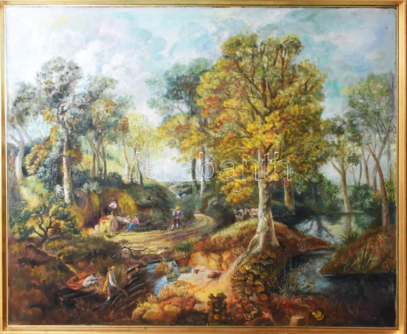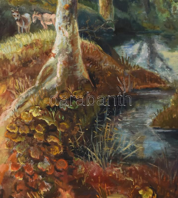 Jelzés nélkül: Erdei jelenet. Olaj, vászon. Sérült. Fakeretben. 80x100 cm. KIZÁRÓLAG SZEMÉLYES ÁTVÉTEL, NEM POSTÁZZUK! / ONLY PERSONAL COLLECTION IN OUR OFFICE!