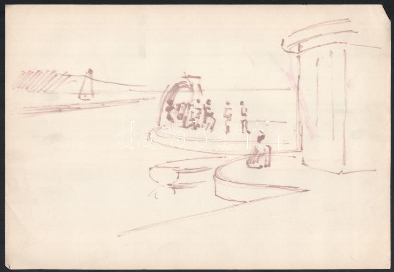 Jelzés nélkül, össz. 10 db rajz: Városképek, hajók, tájak. Filctoll, c...