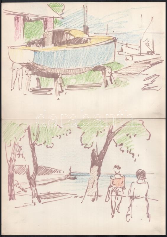 https://www.darabanth.com/en/457-Online-auction/457.0/Paintings-and-graphics/Paintings-and-graphics-quot-signedquot-or-quot-without-signquot-~500003/Jelzes-nelkul-ossz-7-db-rajz-Balatoni-eletkepek-hajokkal-emberekkel-Filctoll-kreta-c~II3018057