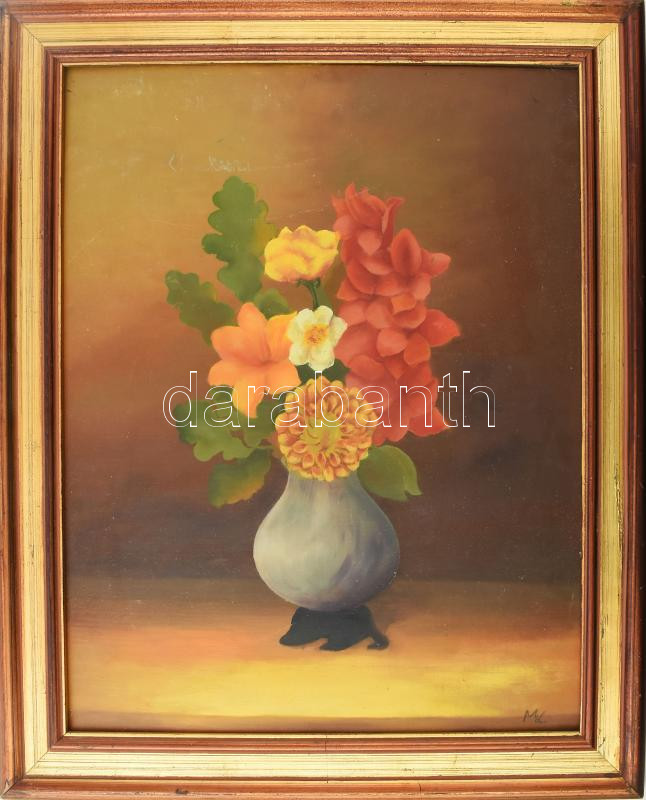 ML jelzéssel: Csendélet. Olaj, farost. Dekoratív fakeretben. 50×40 cm
