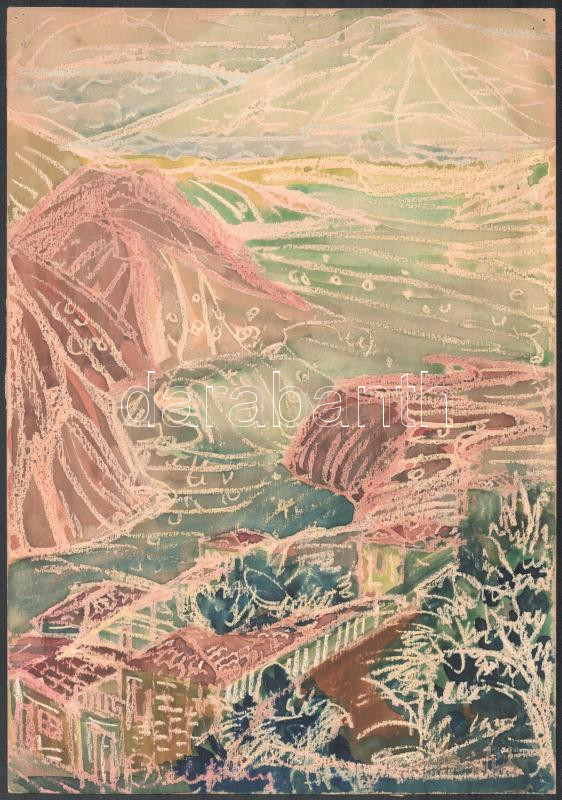Olvashatatlan Juno v. Jumo?) jelzéssel: Görög táj. Monotípia, papír. 3...