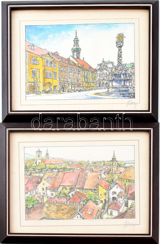 Olvashatatlan jelzéssel, 2 db mű: Soproni részletek. Színezett nyomat,...