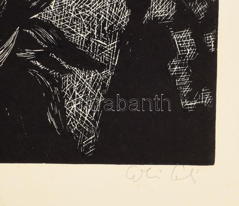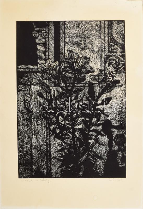 Olvashatatlan jelzéssel: Csendélet és szekrény. Fametszet, papír, jelz...