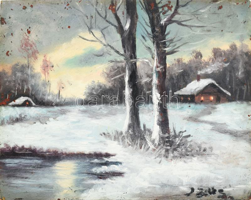 Olvashatatlan jelzéssel: Téli táj. Olaj, karton. Kissé sérült. 21,5×27...
