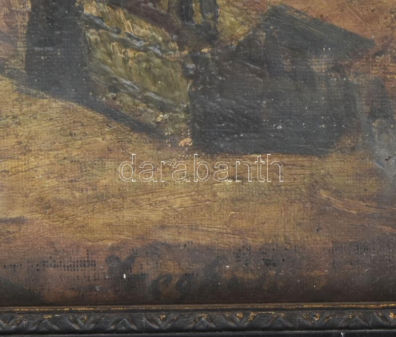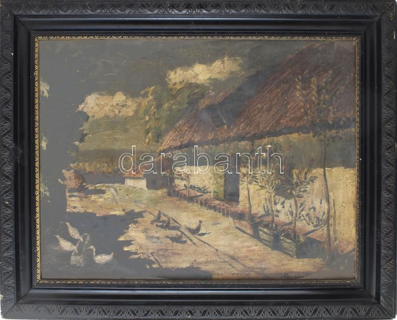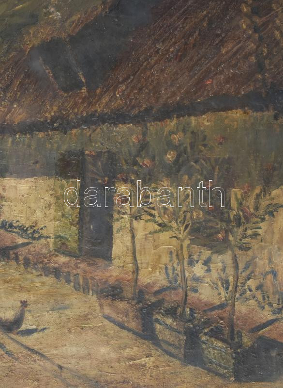 Olvashatatlan jelzéssel: Virágos udvar. Olaj, vászon, javított. Dekora...