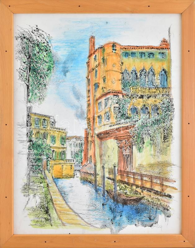 Olvashatatlan jelzéssel: Vízparti váror. Vegyes technika, nyomat. Fake...