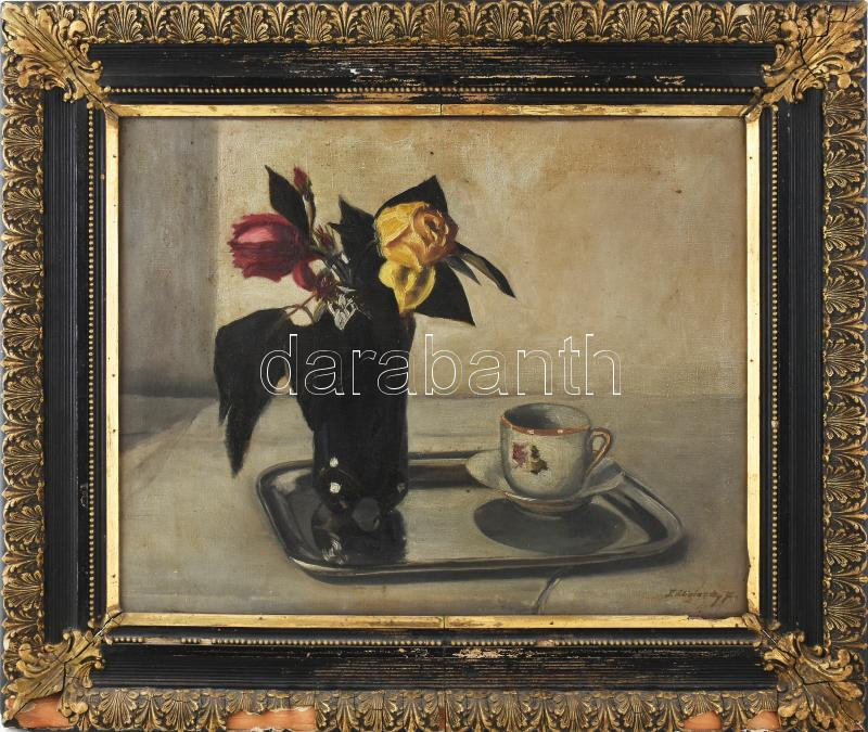 Olvashatatlan jelzéssel (Záborszky F.?). Csendélet. Olaj, vászon. Deko...