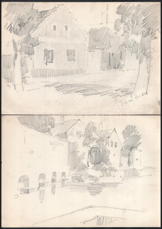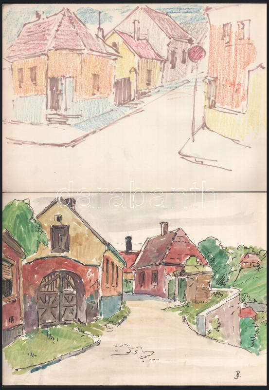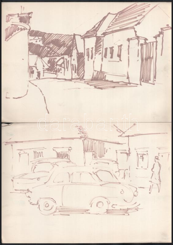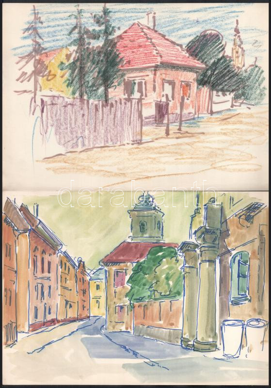 Olvashatatlan jelzéssel vagy jelzés nélkül, össz. 10 db rajz: Városkép...