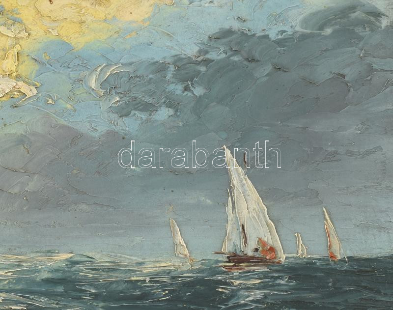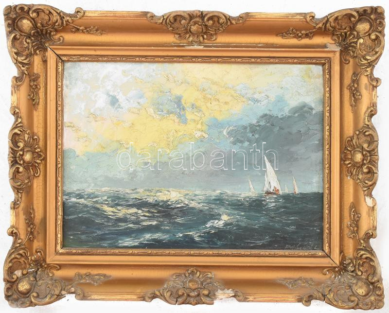 Petheő A L jelzéssel: Vitorlások. Olaj, karton. Dekoratív, sérült fake...