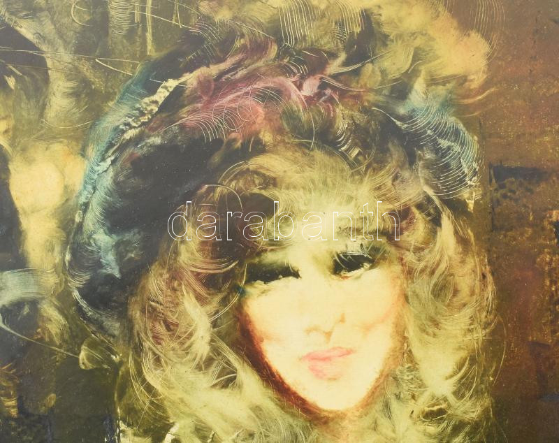 Saly Németh László (1920-2001): Dáma kalapban. Olaj, műanyag. Jelzett....