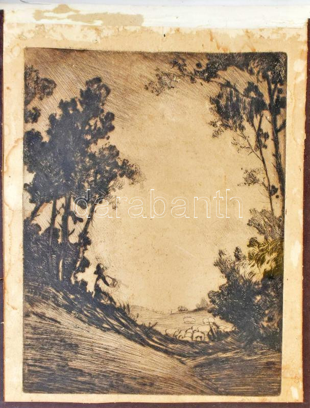 Szűcs V jelzéssel (paszpartu által takarva): Furulyázó. Rézkarc, papír...