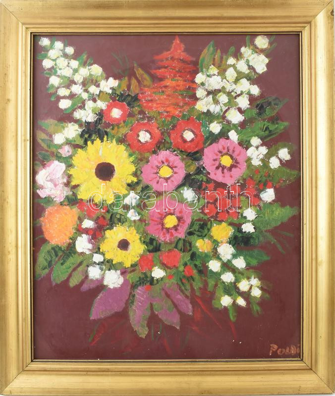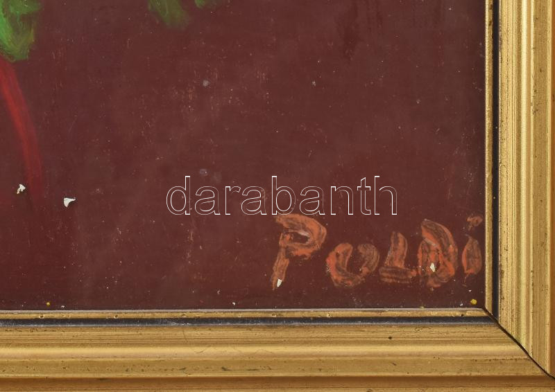 Böhm Lipót, Poldi (1916-1995): Ünnep. Olaj, vászon, jelezve jobbra lent. Hátoldalán autográf felirattal és Képcsarnok Vállalat címkéjével. Üvegezett, dekoratív, kissé sérült fakeretben, 60×50 cm