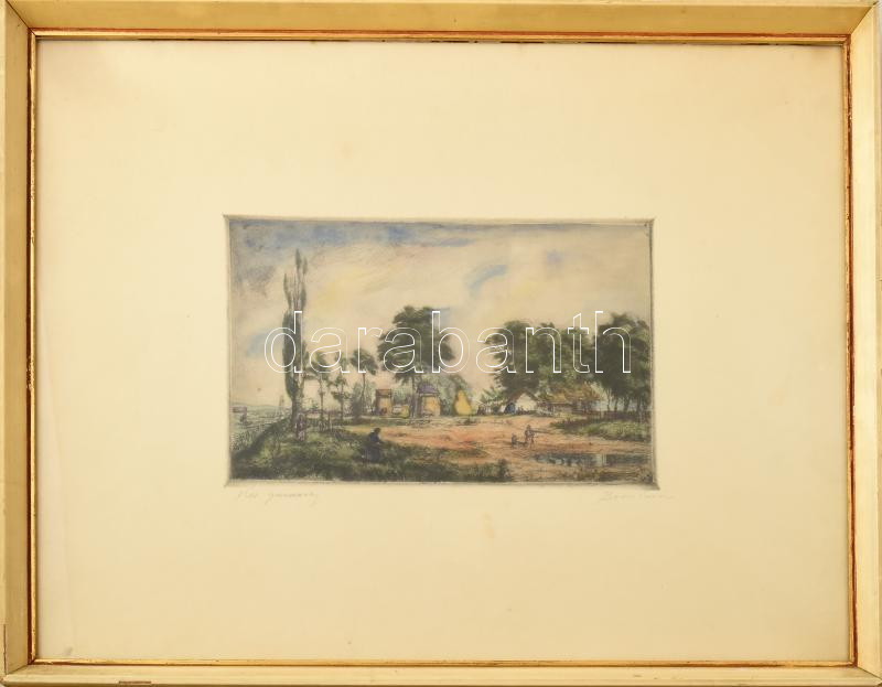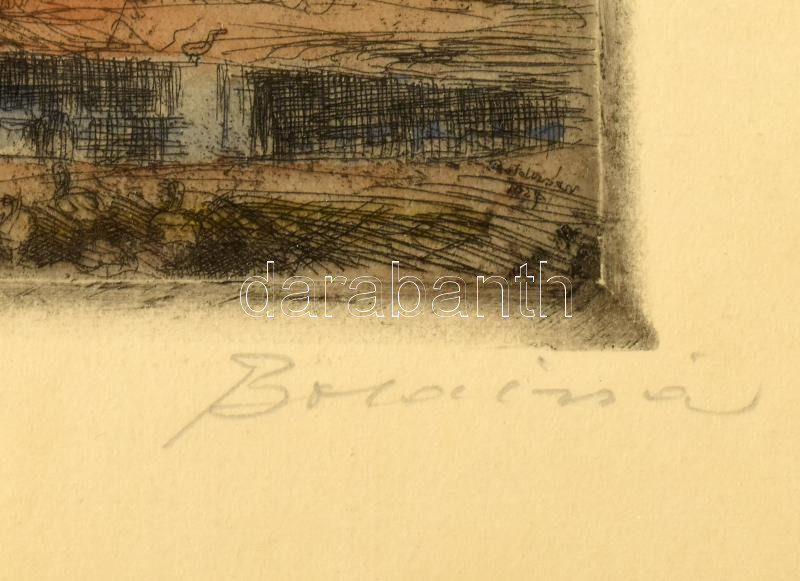 Boldizsár István (1897-1984): Kis gazdaság. Színezett rézkarc, papír, ...