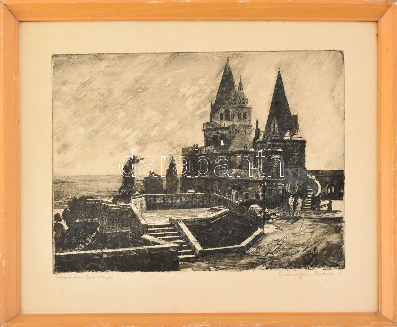 Csurgói Máté Lajos (1931-2001): Halászbástya. Rézkarc, papír, jelzett,...