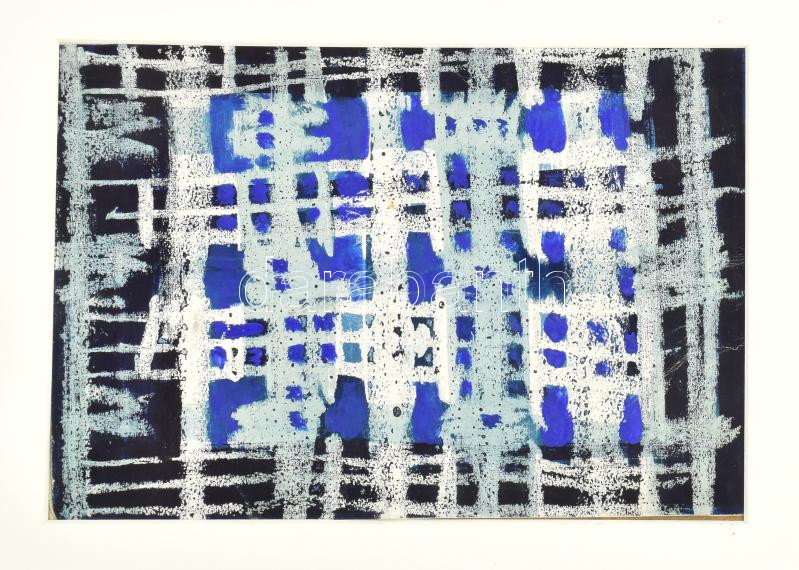 Fett Jolán (1927-2009): Hálózat (cím nélkül). Vegyes technika, papír, jelzés nélkül, paszpartuban, 20,5×29,5 cm