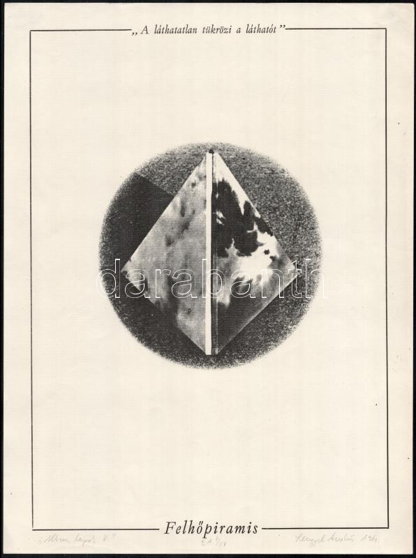 Description: Lengyel András (1952-): Felhőpiramis, "a láthatatlan tükrözi a láthatót" ("Album lapok V."). Ofszet, papír. Jelzett. Művészpéldány EA. II/XV számozással. 36x25 cm